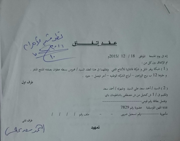 وبالفعل وقع سعد على العقود واستلم عربون أو مقدم العقد ووقع على إيصال إستلام المبلغ.
